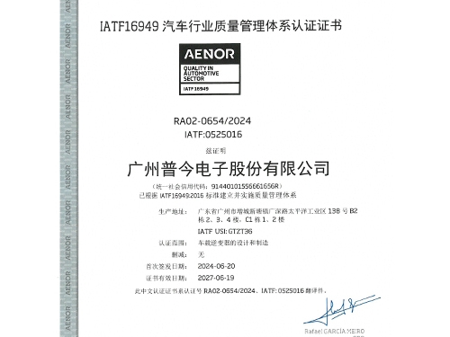 Guangzhou Pujin Electronics has successfully obtained the IATF 169... -